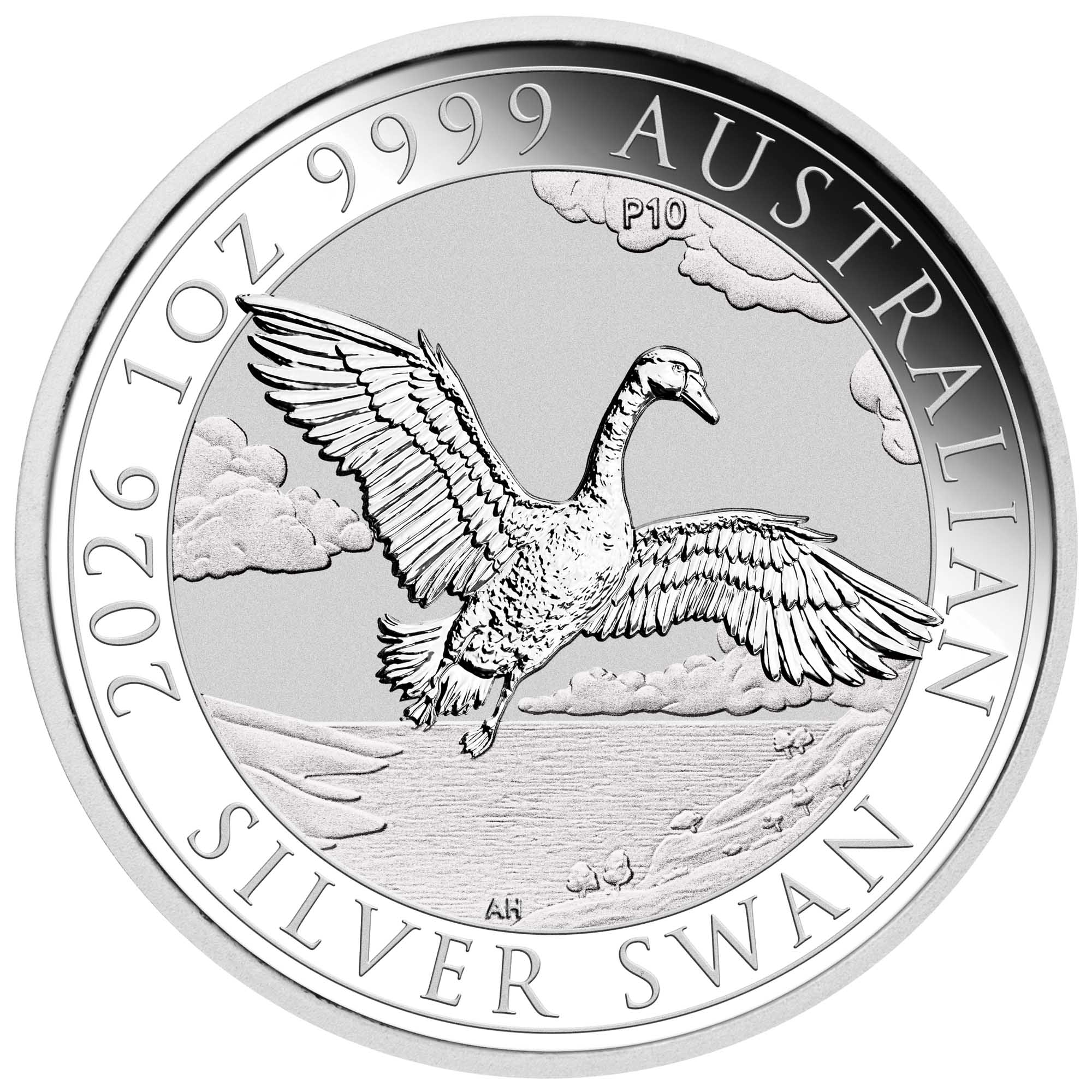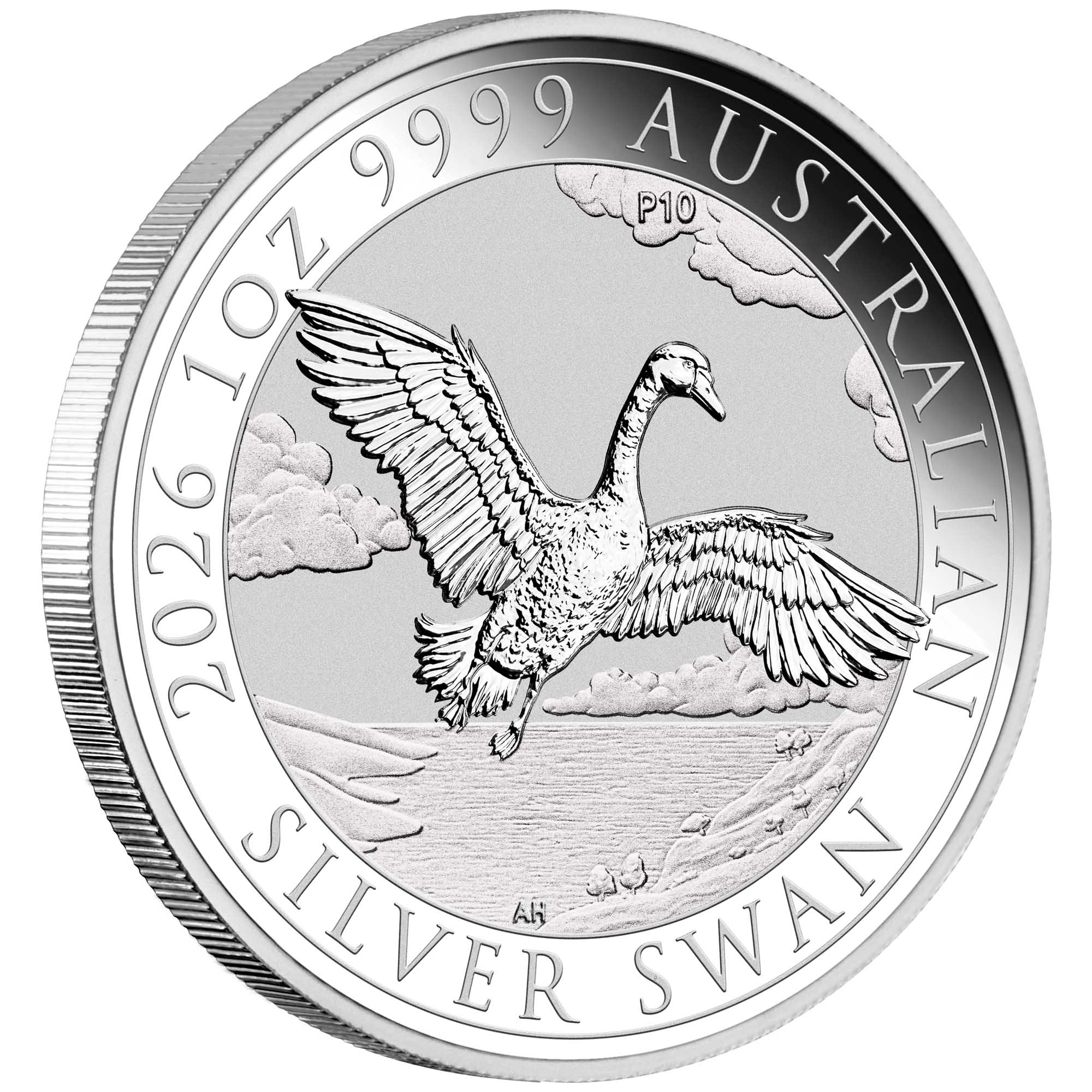 The coin’s reverse depicts a magnificent swan soaring above a picturesque lake set amongst a tranquil countryside. Behind the swan, a brilliant sky stretches across the horizon with drifting clouds. Also included in the design is the inscription ‘2026 1oz 9999 AUSTRALIAN SILVER SWAN’ and a ‘P10’ mintmark, signifying the tenth anniversary of the swan design released by The Perth Mint. The coin’s obverse depicts the Dan Thorne effigy of His Majesty King Charles III and the monetary denomination.