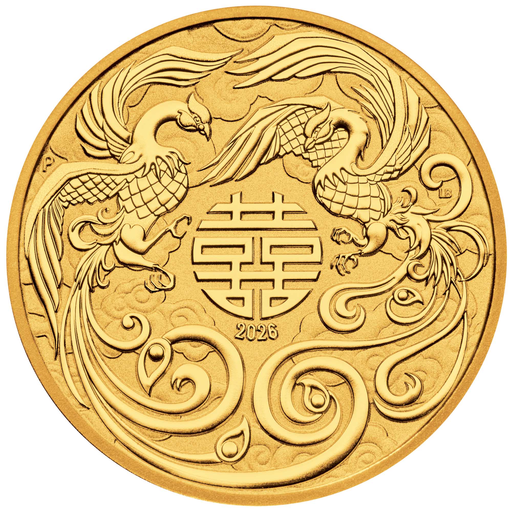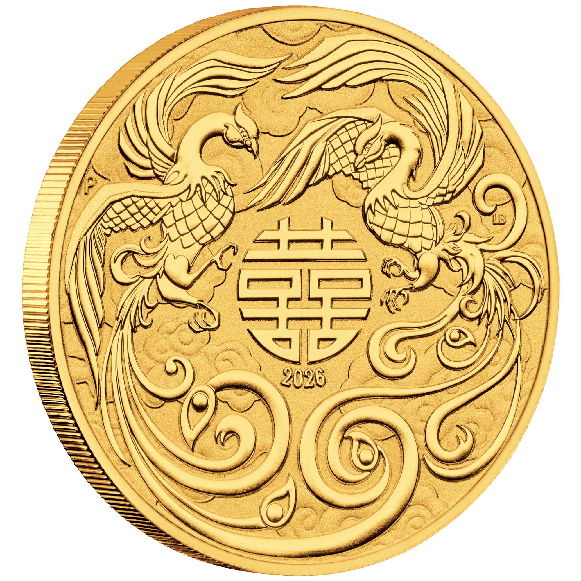 A rich fusion of coin artistry and Chinese legend, this 1oz gold bullion coin celebrates the harmony of the double phoenix.