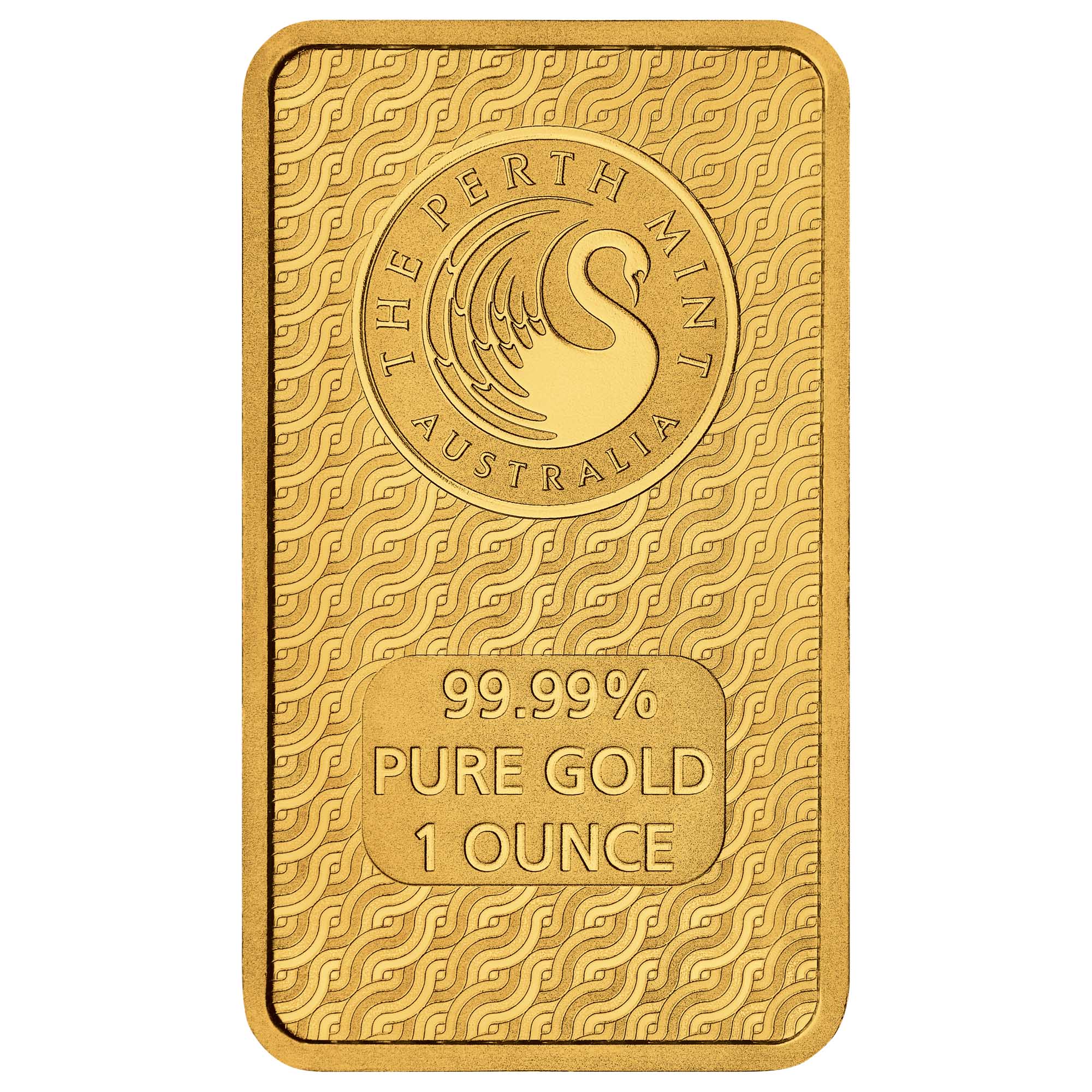 The back of the bar is stamped with The Perth Mint's London Bullion Market Association registered mark, a stylised swan symbolising our 125 year-old reputation for quality. The logo and the bar’s weight and fineness appear on the same background pattern.