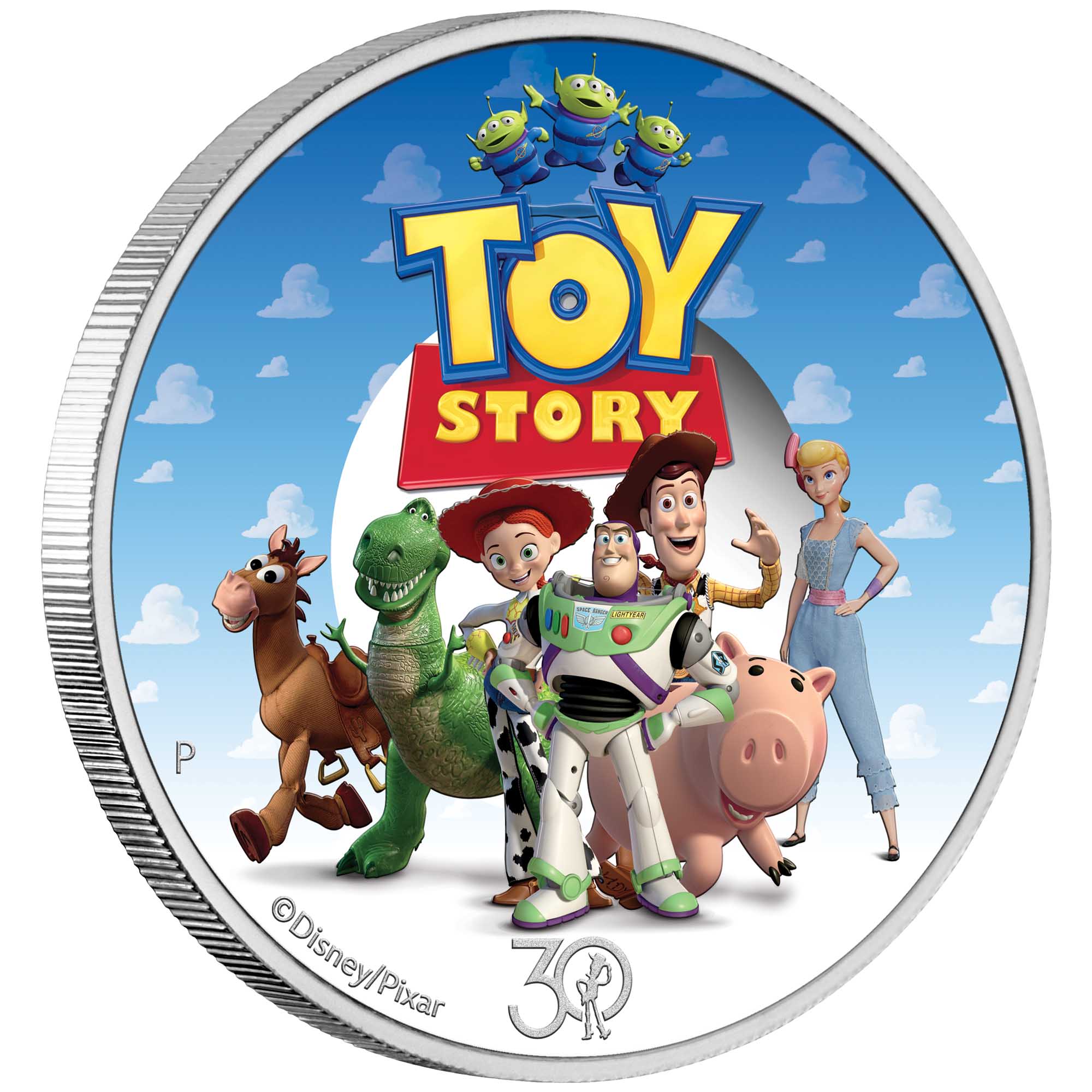 The coin’s coloured reverse features a vibrant depiction of each iconic character, including Buzz Lightyear, Woody, Jessie, Hamm, Bo Peep, Rex and Bullseye. The design also includes the official ‘TOY STORY’ and ‘30 YEARS & BEYOND’ logo, along with The Perth Mint’s ‘P’ mintmark.