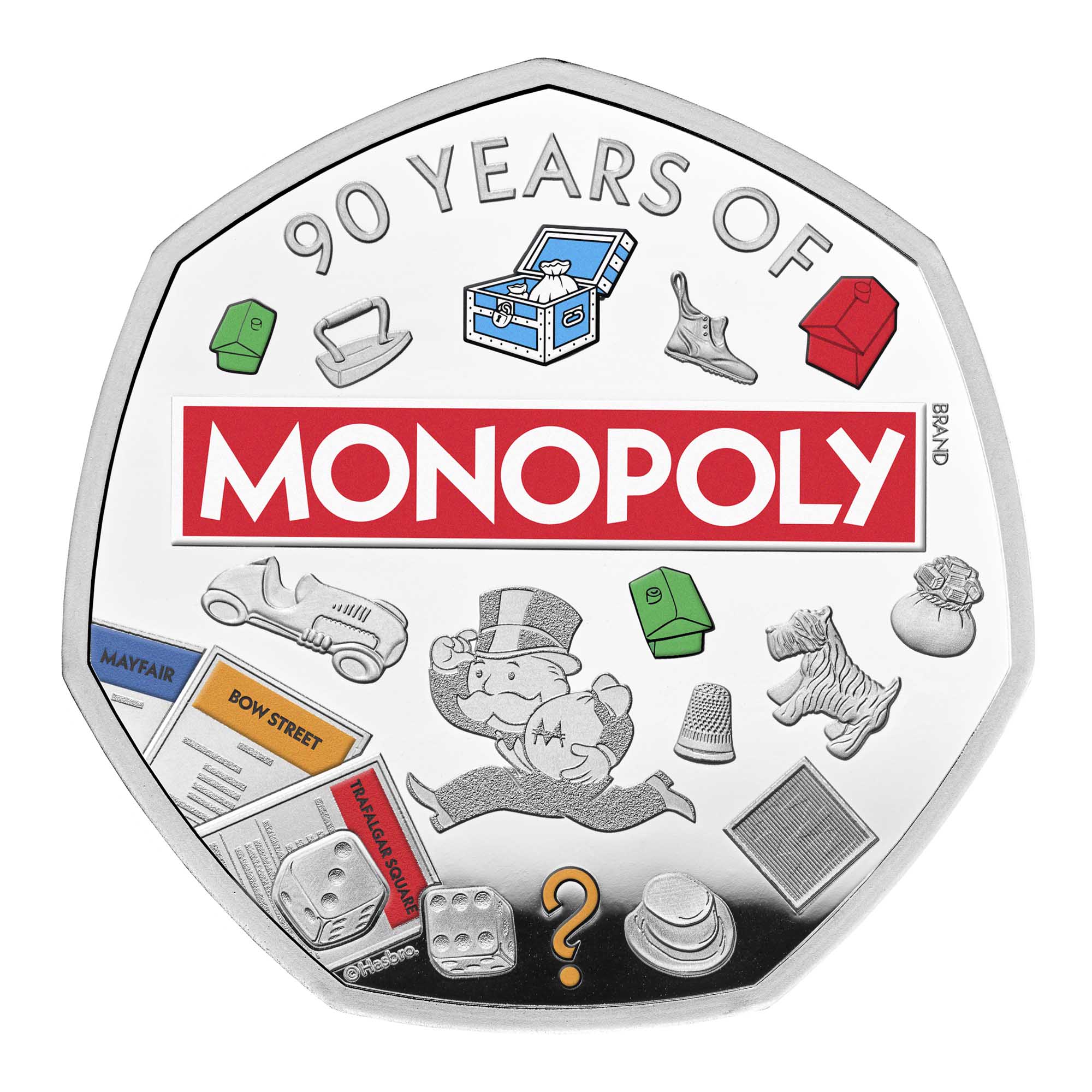 90 Years of Monopoly 2025 UK 50p Silver Proof Coloured Coin