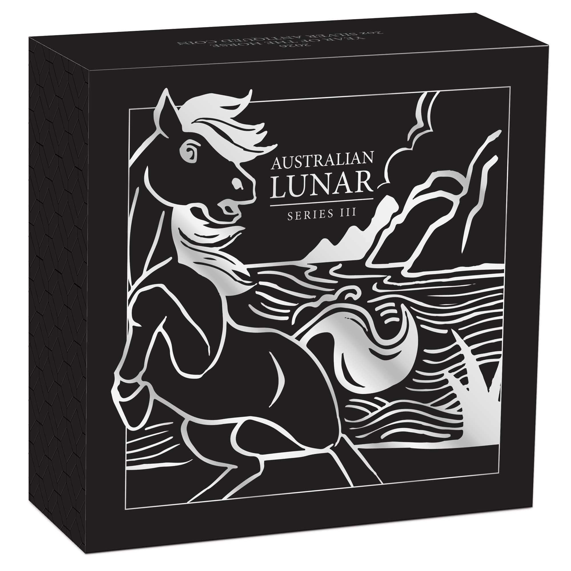 Struck from 2oz of 99.99% pure silver, this stunning piece marking the Year of the Horse has an antiqued surface, a coin treatment that tones the natural lustre of silver to convey the look of an aged artefact.
