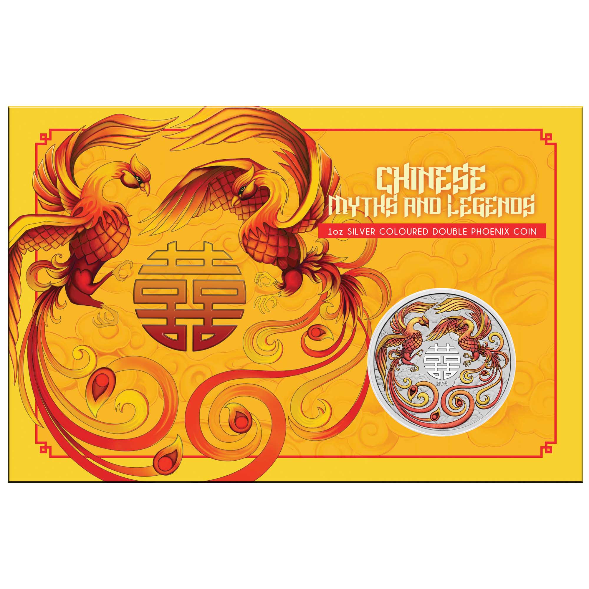 Chinese Myths and Legends Double Phoenix 2025 1oz Silver Fire Coloured Coin in Card