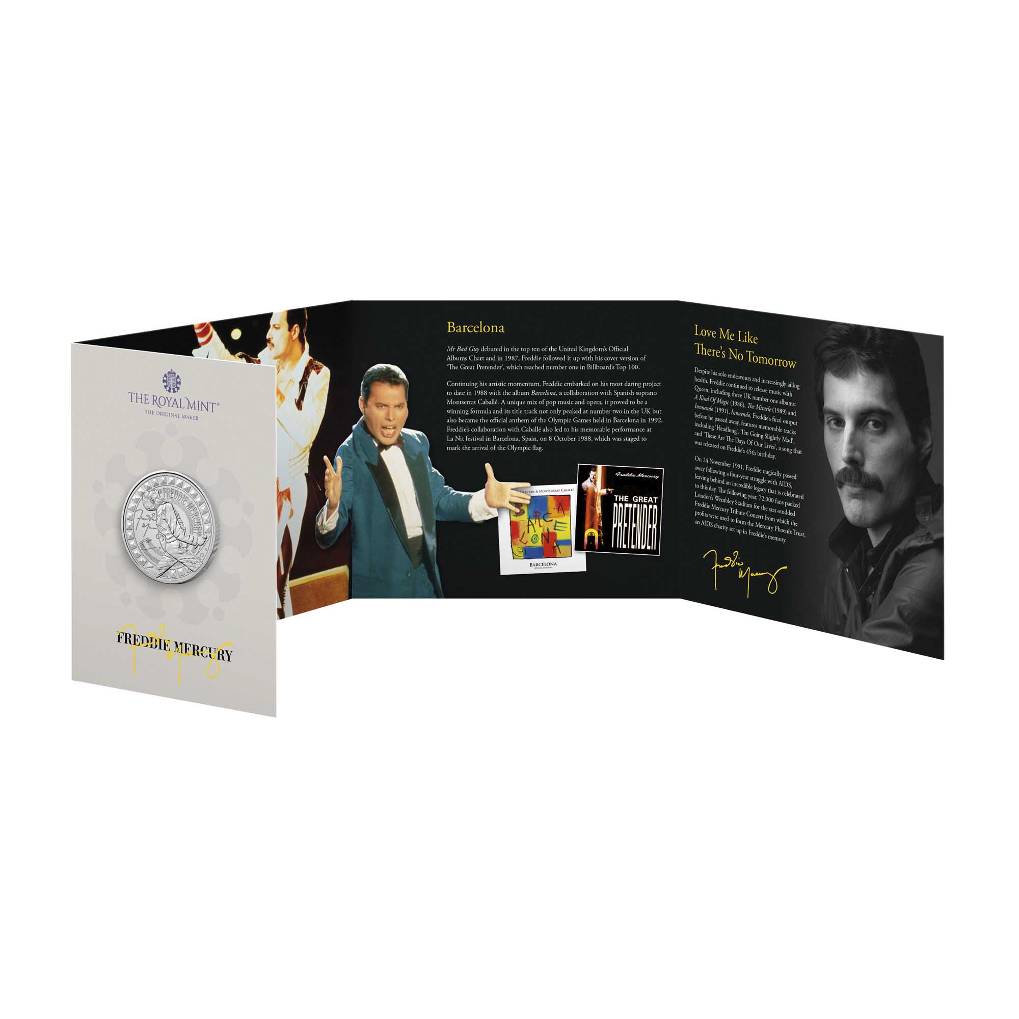 This coin is presented in a beautifully illustrated presentation card exploring the illustrious career of this true music legend.