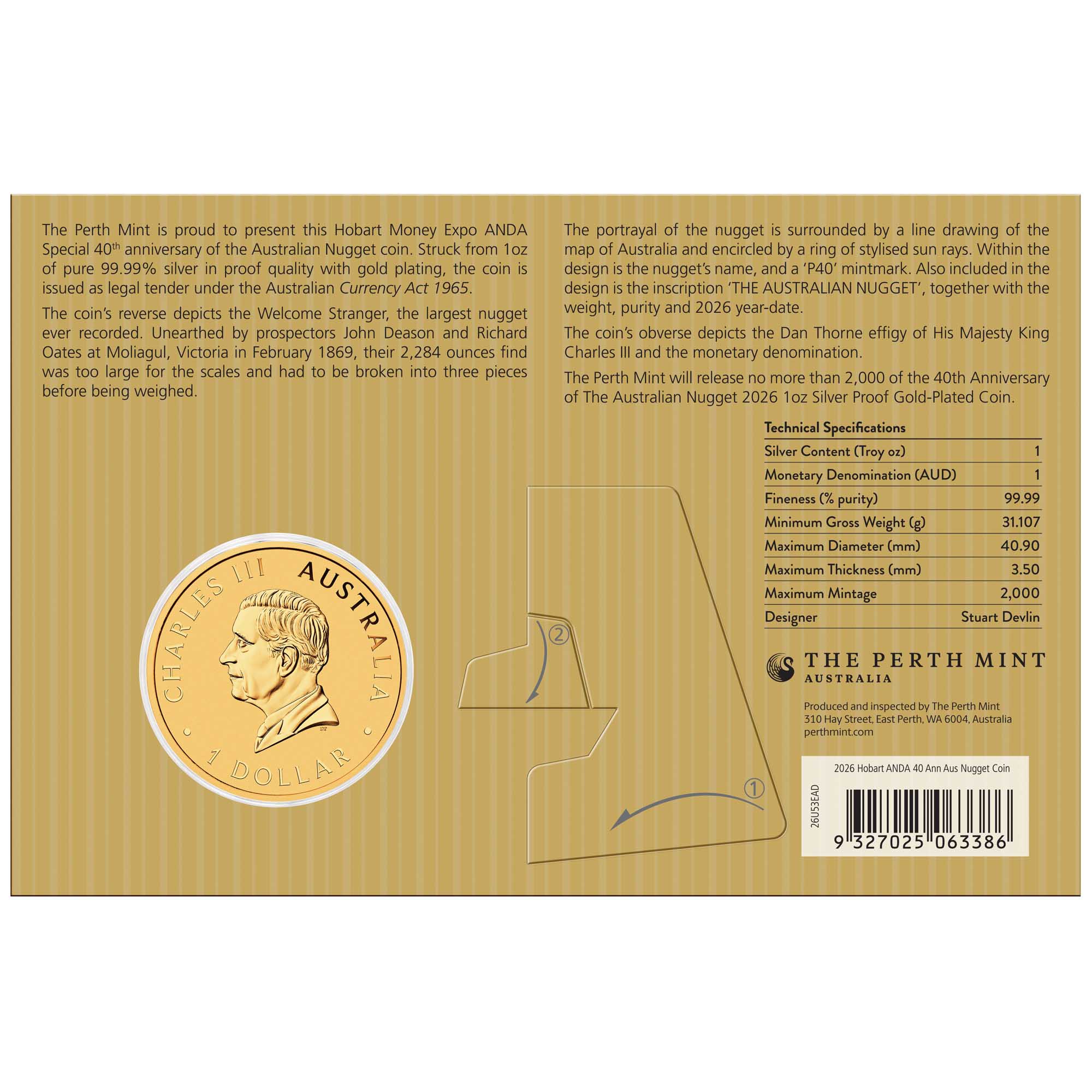 Hobart Money Expo Special Australian Nugget 40th Anniversary 2026 1oz Silver Proof Gold-Plated Coin