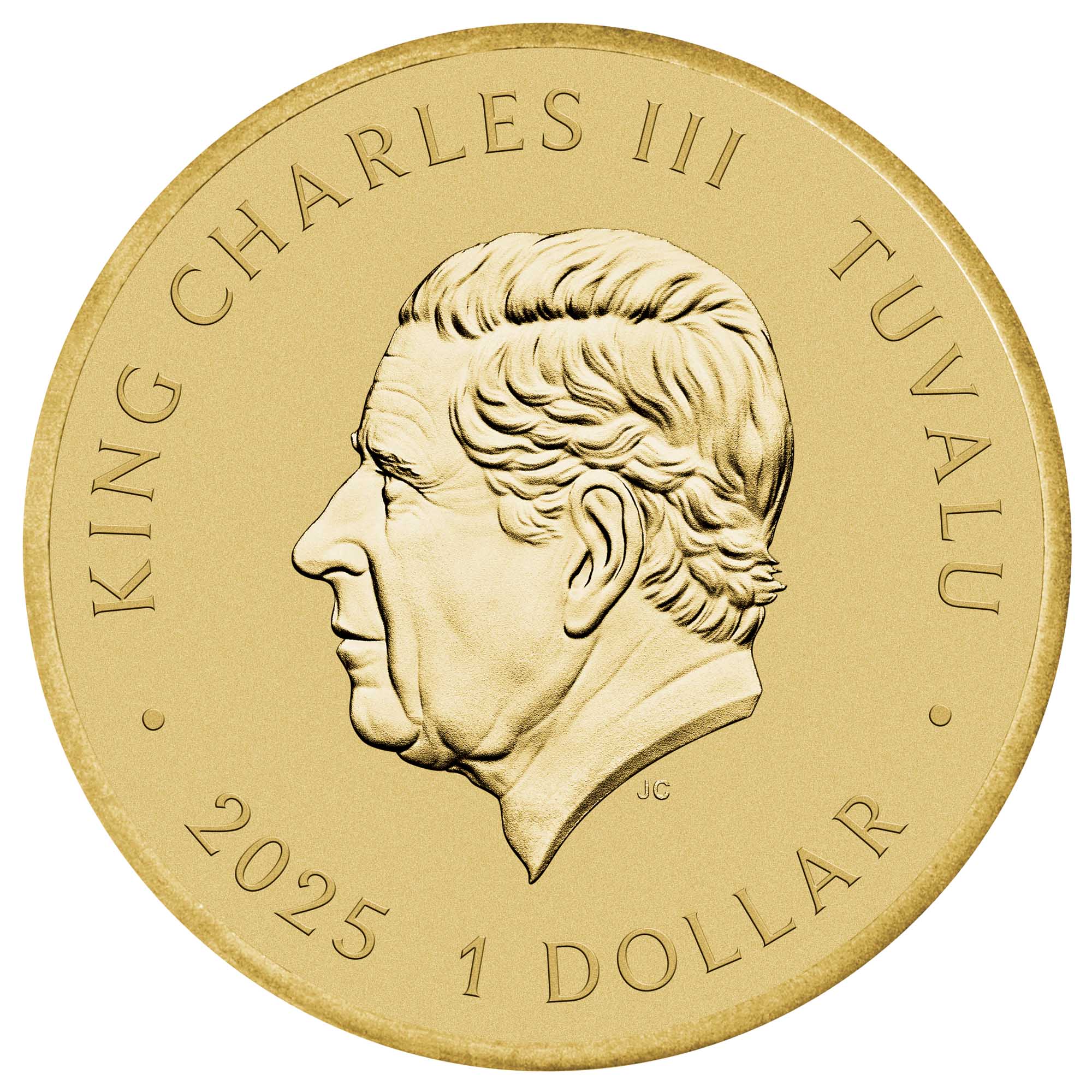 The coin’s reverse portrays SpongeBob SquarePants and his friends including Patrick Star, Squidward Tentacles, Gary, Sandy Cheeks, Mr Krabs and Sheldon J. Plankton, all depicted in full colour. The background represents the underwater city of Bikini Bottom, along with flower-shaped motifs. The design includes the official ‘SPONGEBOB SQUAREPANTS’ logo, and The Perth Mint’s ‘P’ mintmark.