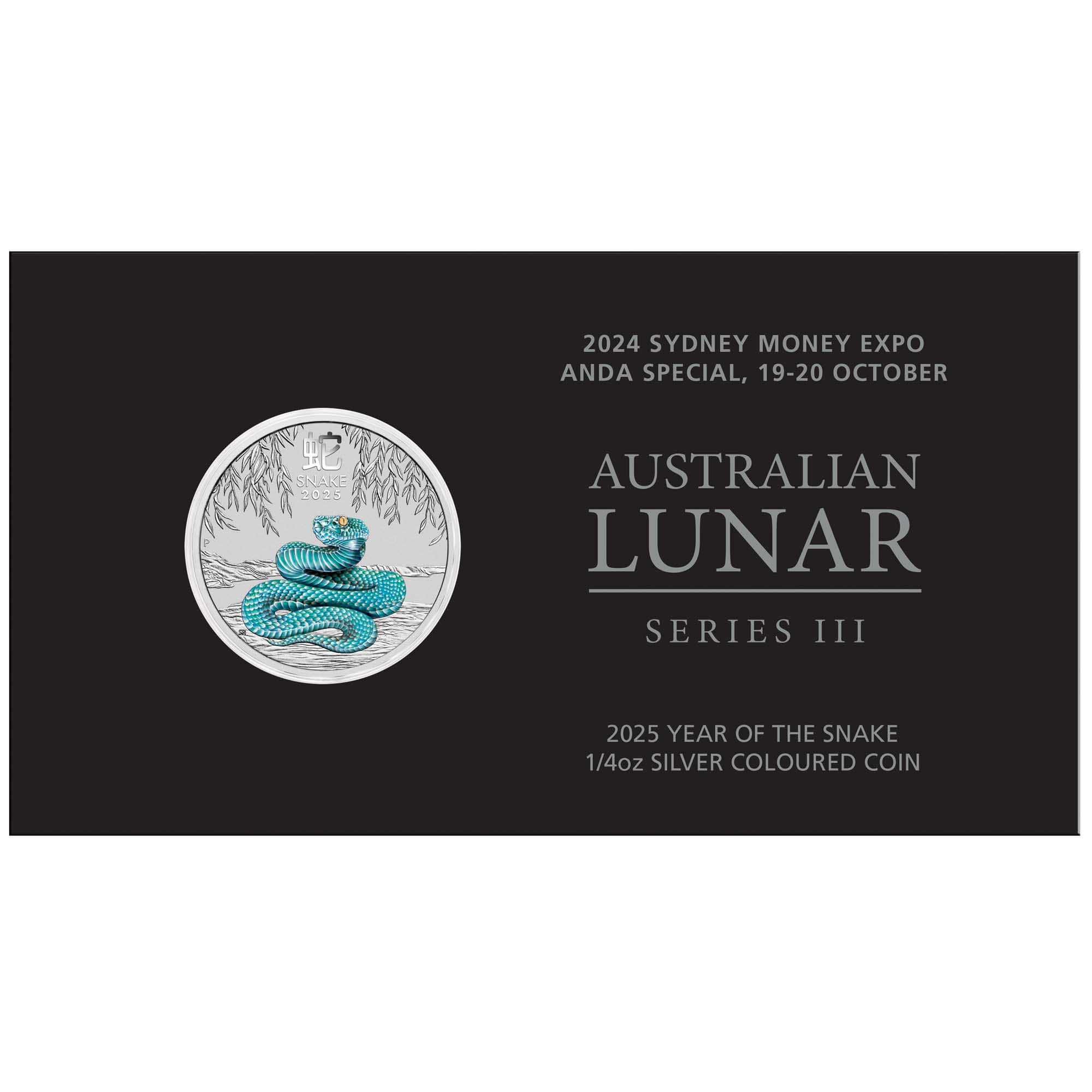 Sydney Money Expo Australian Lunar Series III 2025 Year of the Snake 1/4oz Silver Coin in Card