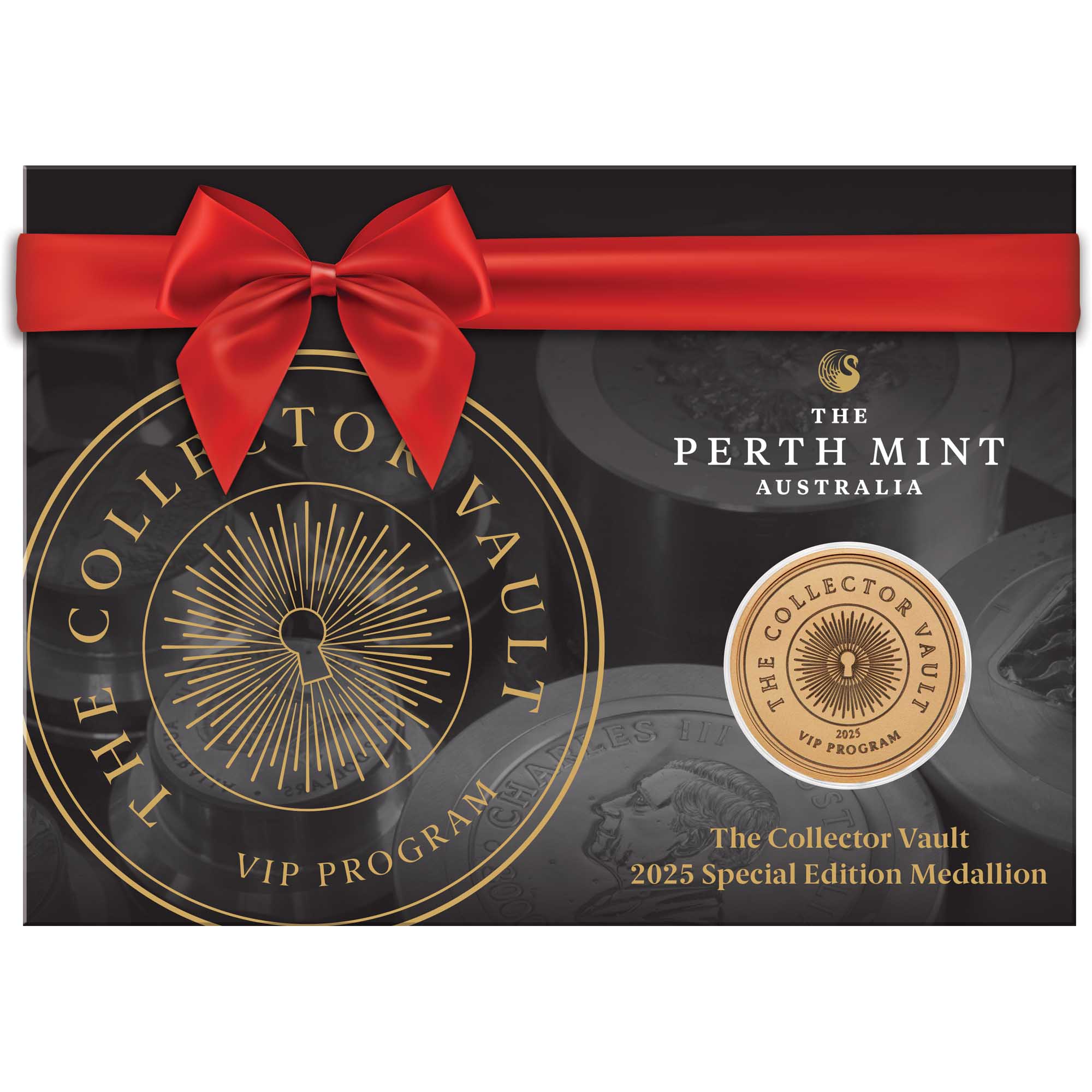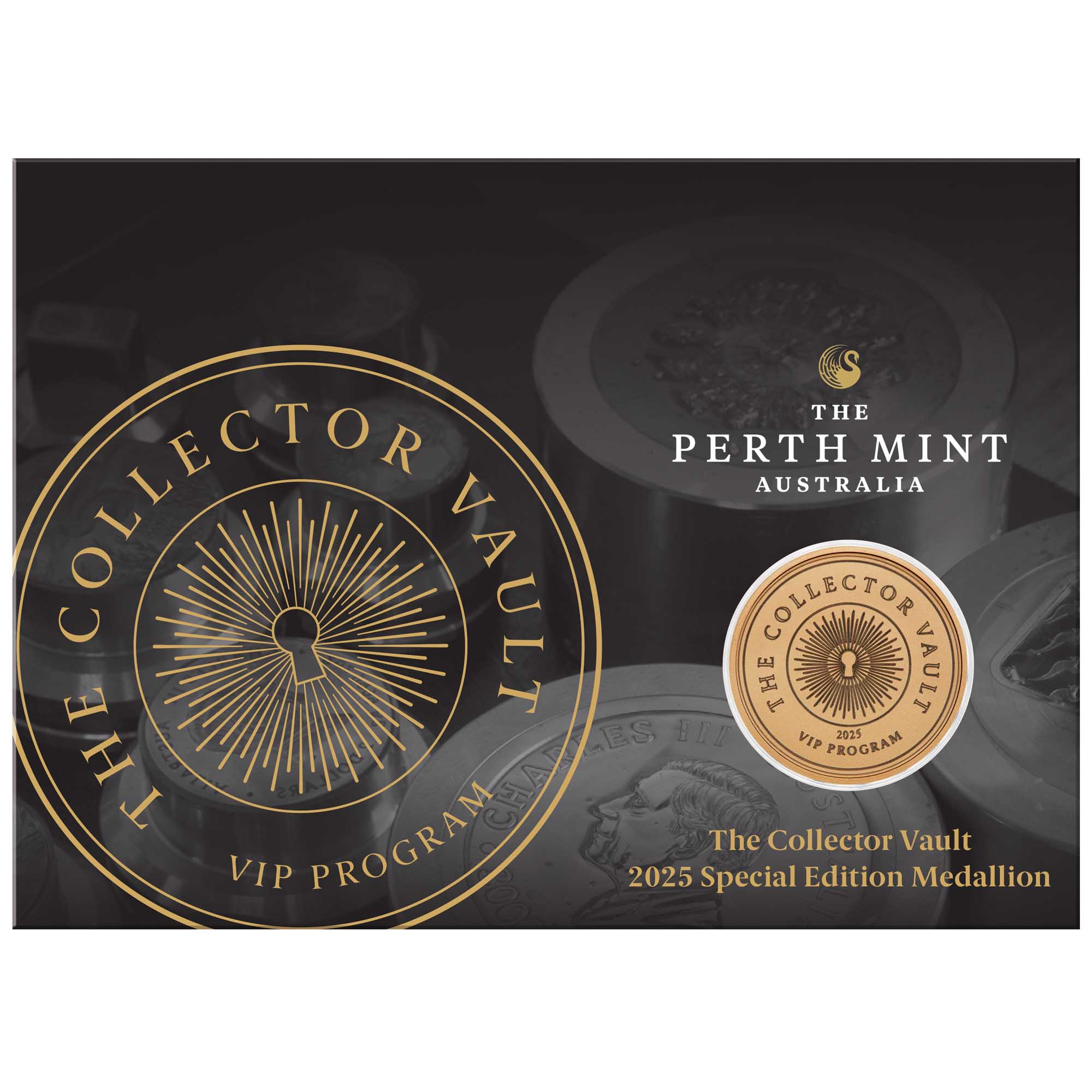 We sincerely appreciate your loyalty and support, and as a token of our gratitude we've minted a special surprise especially for you; a gold-plated aluminium bronze medallion featuring the official Collector Vault seal and the iconic Perth Mint swan.