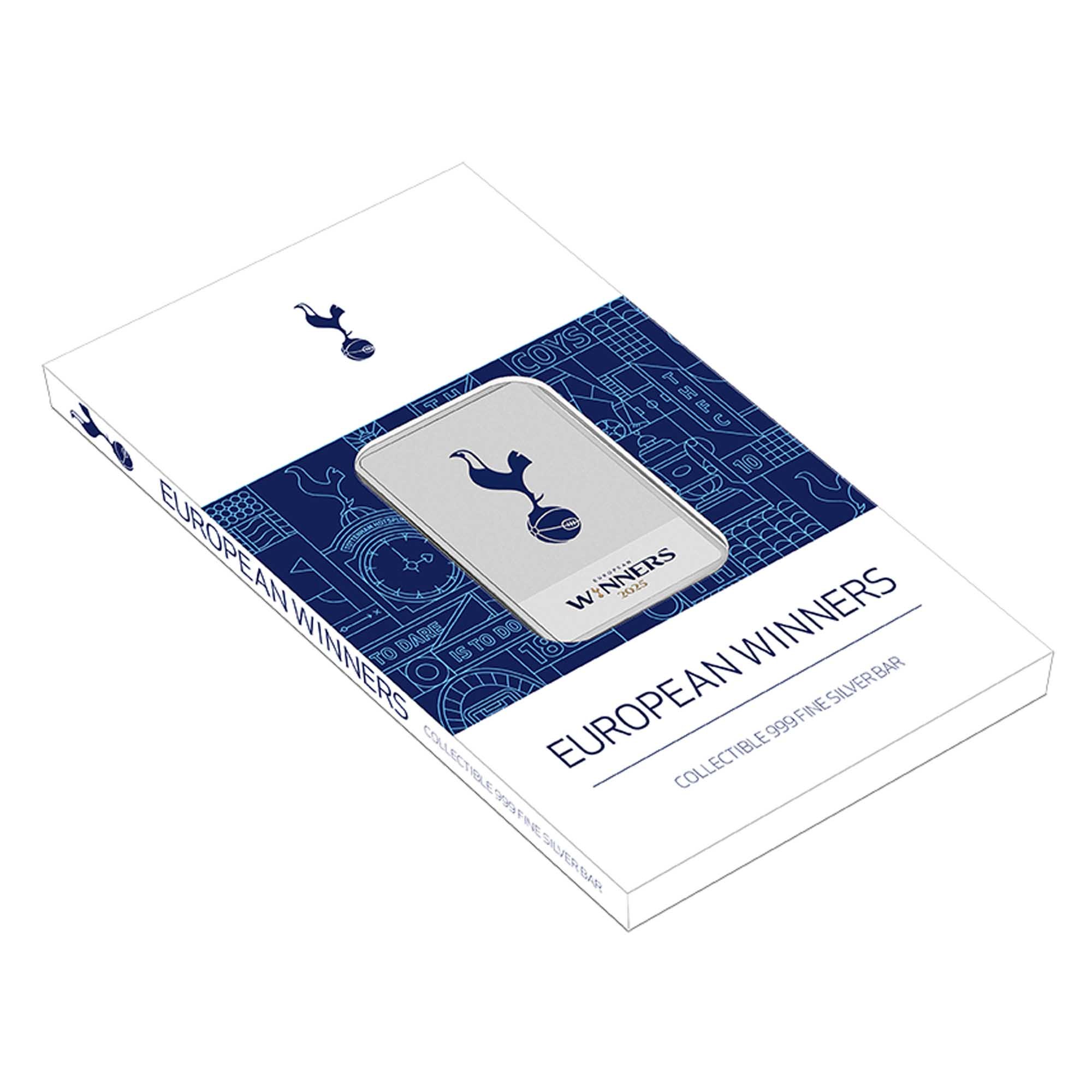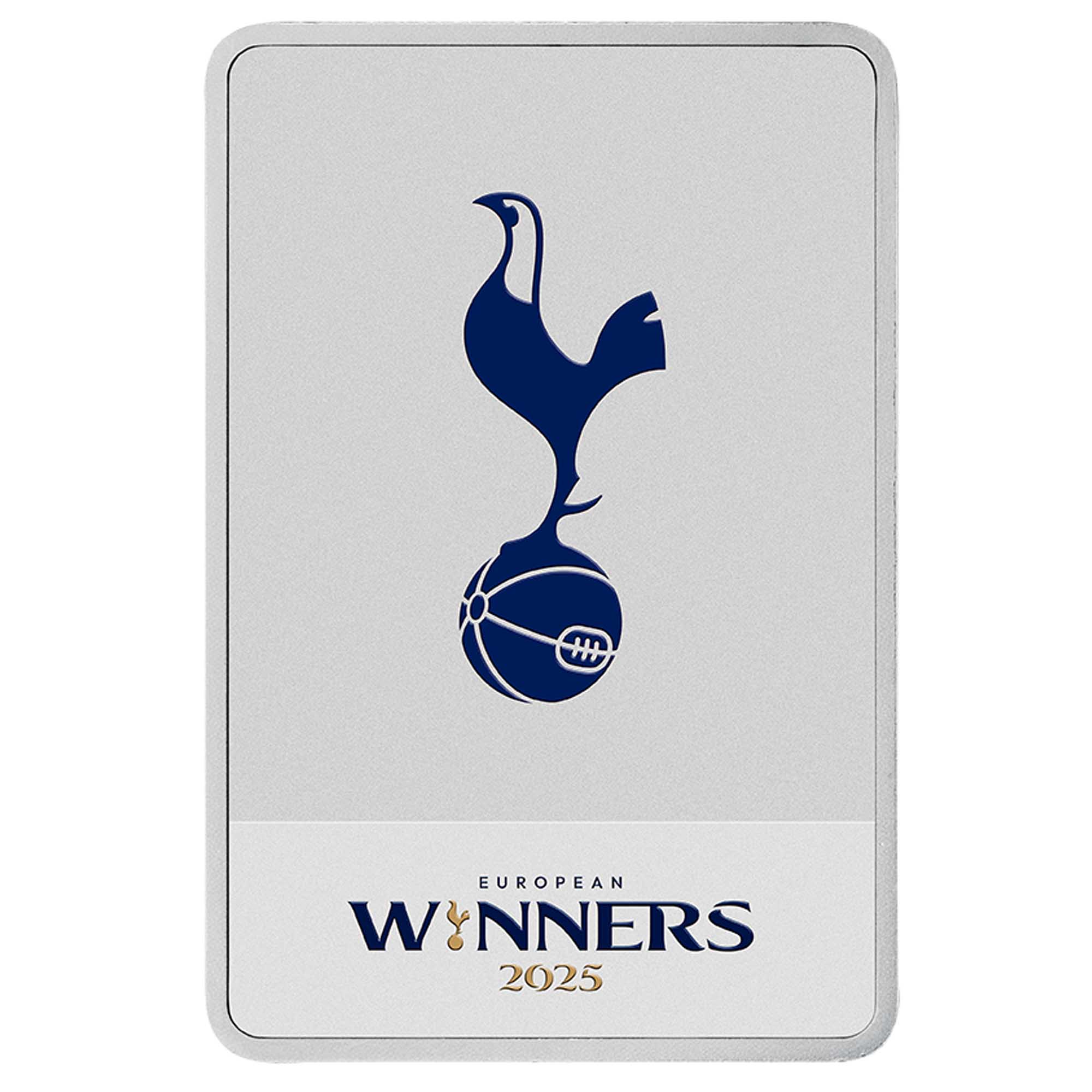 Crafted from 99.9% fine silver by The Coin Company, the bar's reverse showcases a coloured engraving of the iconic Spurs' crest above the inscription 'EUROPEAN WINNERS 2025', with the crest used to represent the 'I' in 'WINNERS'. The obverse features a stylised club logo as well as its weight and purity.