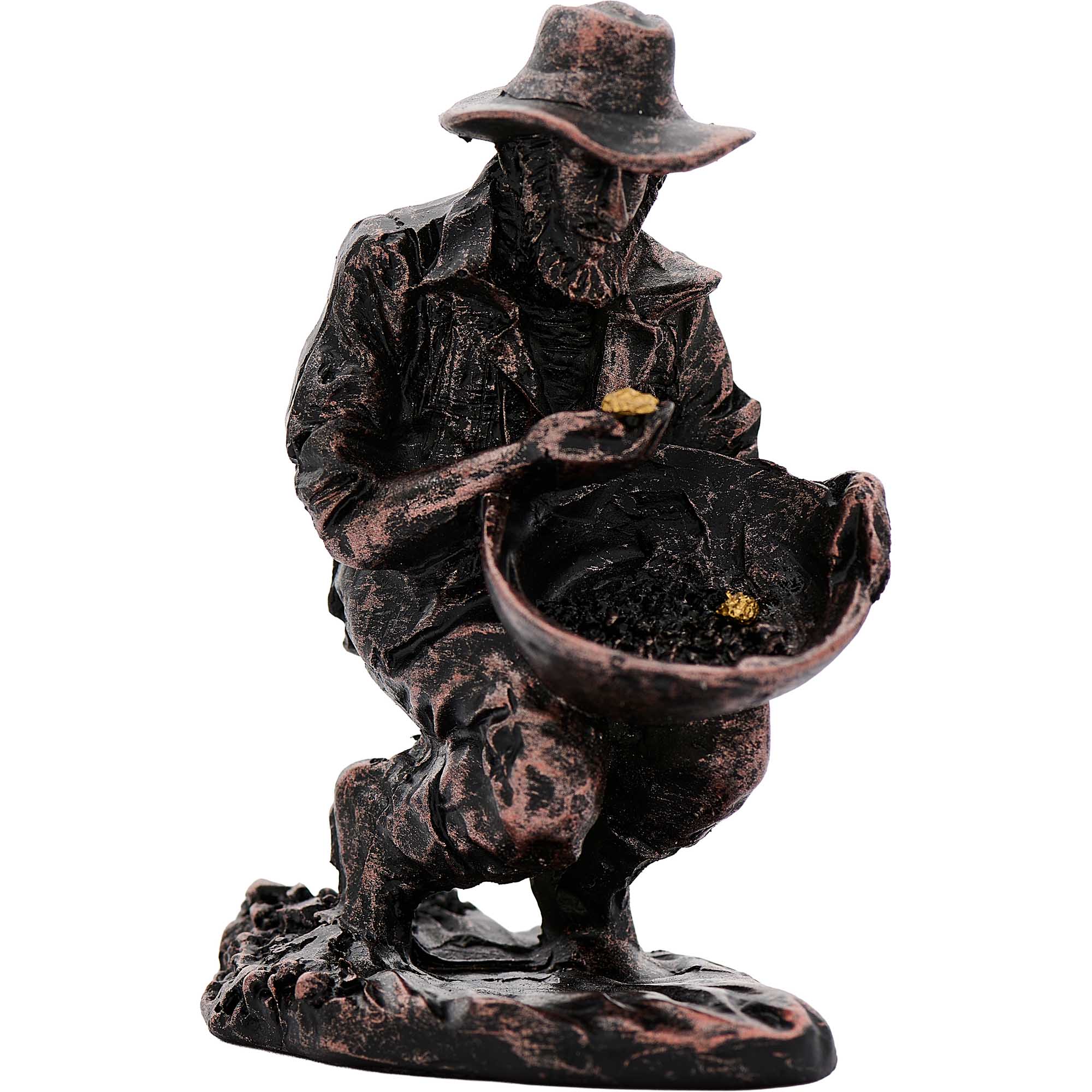 Celebrate the spirit of Western Australia’s rich gold-mining heritage with this charming prospector figurine—a heartfelt tribute to the hardworking pioneers of the past. Meticulously crafted with fine detailing, the Prospector holds a genuine natural gold nugget in his hand while a second rests in his gold pan. These figurines allow you to take a little piece of The Perth Mint’s history home with you.