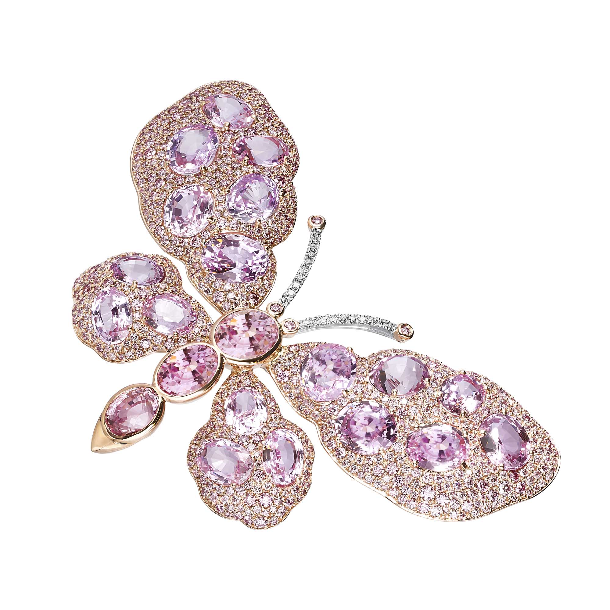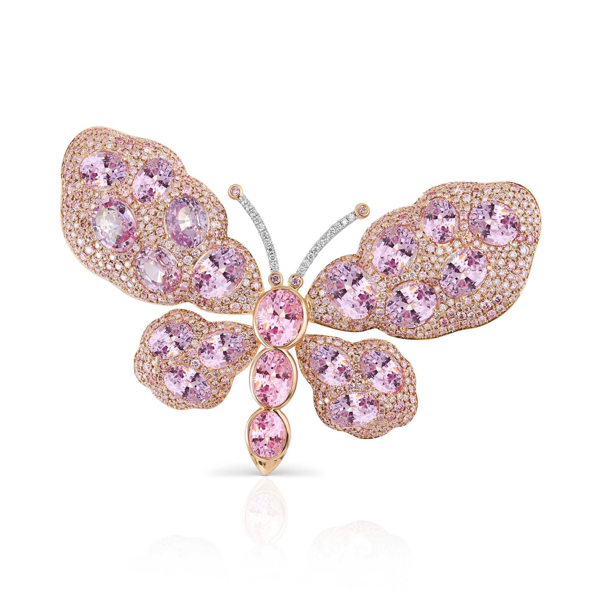 Breathtakingly beautiful, the Padparadscha butterfly brooch is a masterclass in elegance and versatility, uniting some of the world’s most coveted gemstones in a design that speaks to grace, metamorphosis, and enduring style. A statement of pure rarity, this brooch can be transformed into a hair piece, dress sash embellishment and more.
