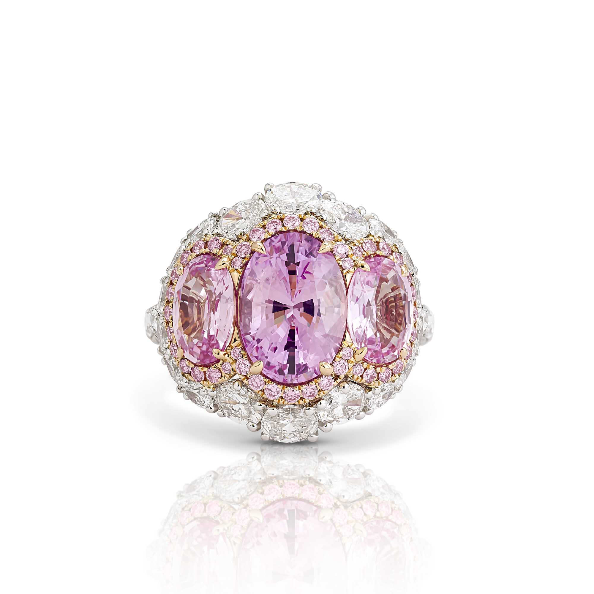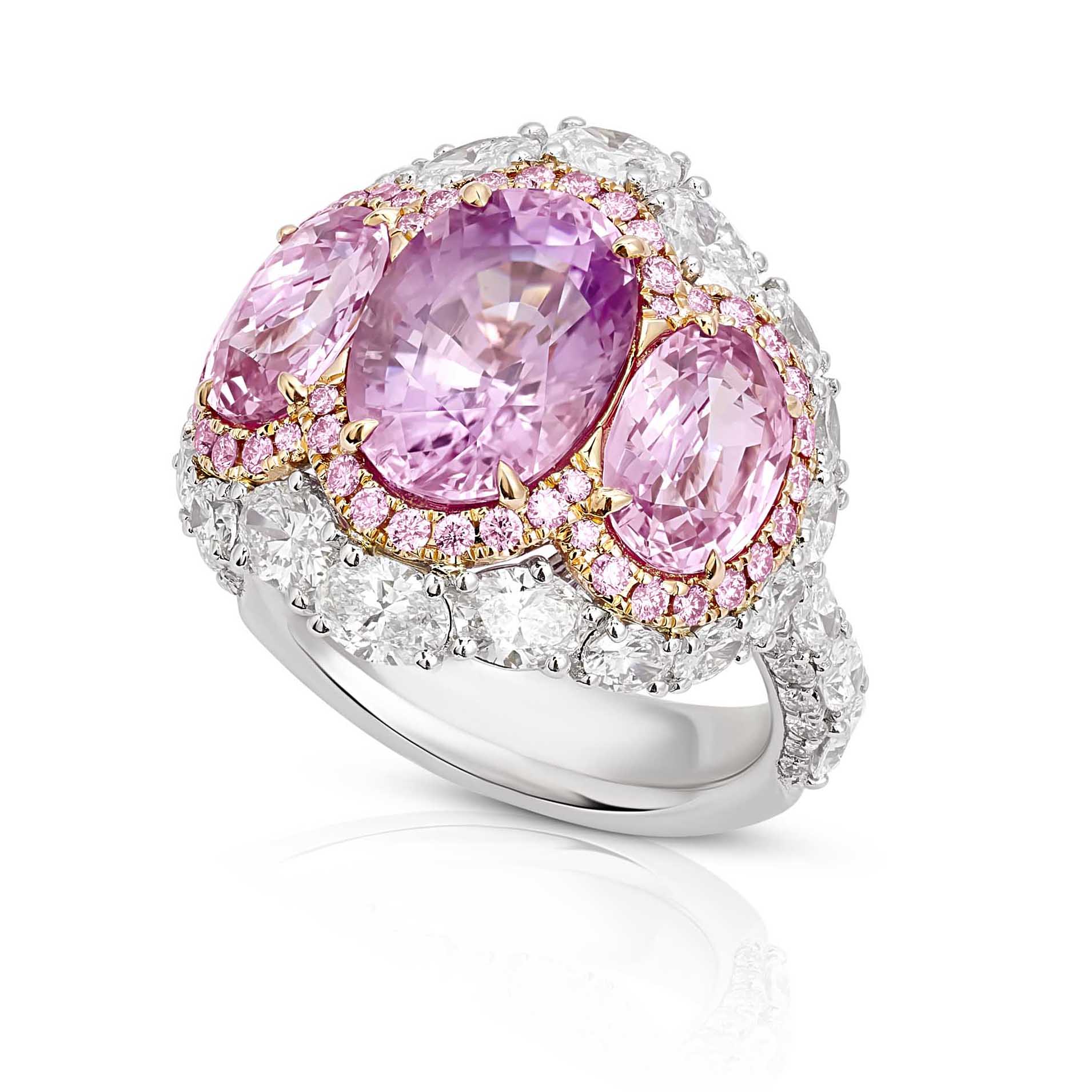 - Features three rare Padparadscha sapphires totalling 7.16ct