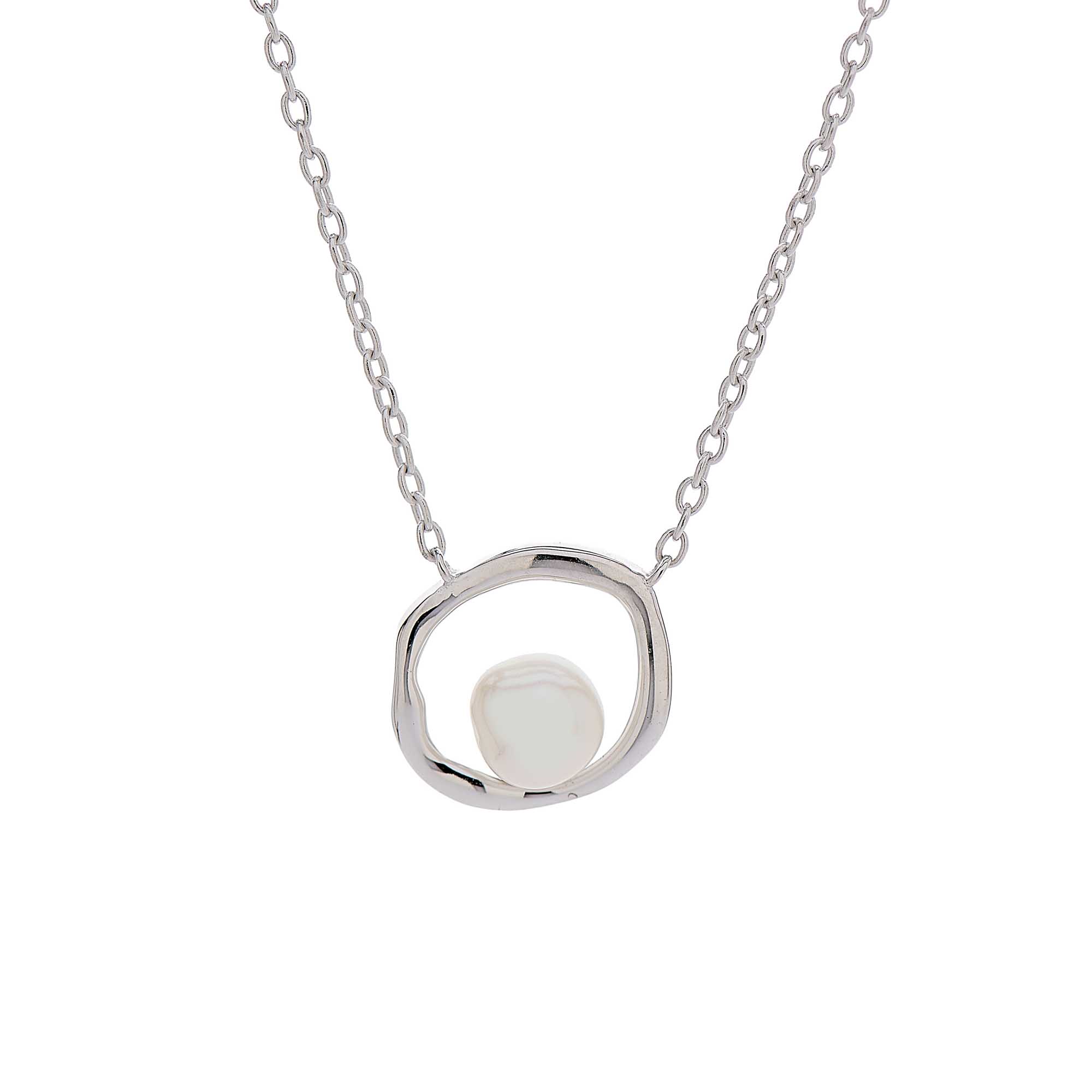 Unique and artistic, this pendant features a baroque freshwater cultured pearl set within a sterling silver halo. The halo’s organic curves echo the natural form of the pearl, creating a harmonious design that celebrates individuality and natural beauty.
